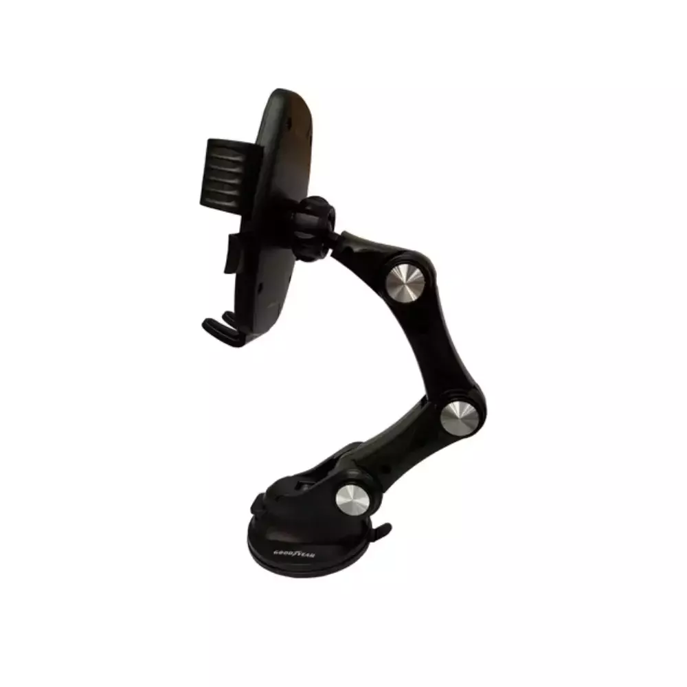 ¡Llevá tu celular seguro y a mano en cada viaje! Este soporte para auto Goodyear se adhiere fácilmente a tu parabrisas o tablero gracias a su potente sopapa, manteniendo tu smartphone firme y accesible. Ideal para usar el GPS, escuchar música o hablar con manos libres, con la calidad y confianza de Goodyear.